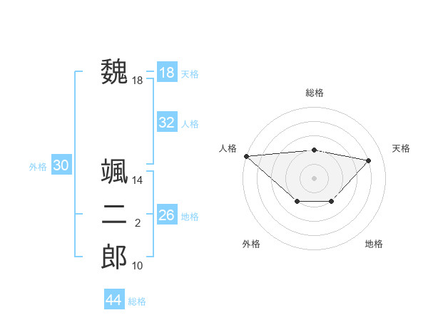 魏 颯二郎さんの総格は44画の2点!