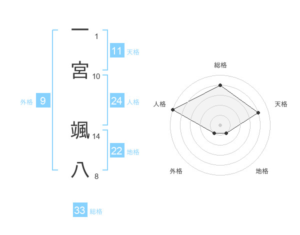 一宮 颯八さんの総格は33画の4点!