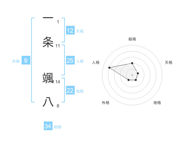 一条 颯八さんの総格は34画の2点!
