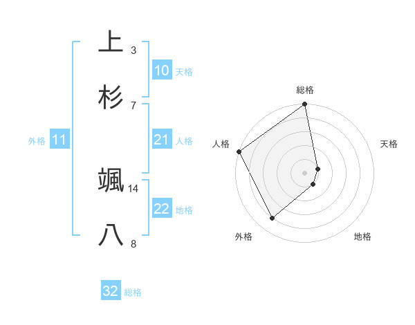 上杉 颯八さんを姓名の画数から五運を鑑定