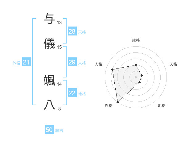 与儀 颯八さんの総格は50画の2点