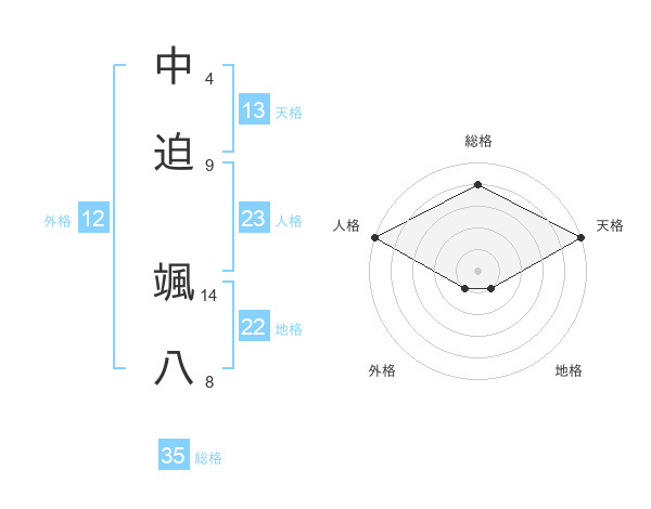 中迫 颯八さんの総格は35画の4点!