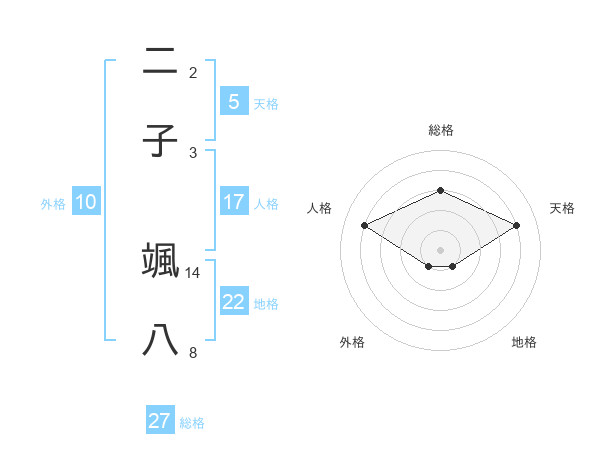 二子 颯八さんの総格は27画の3点!