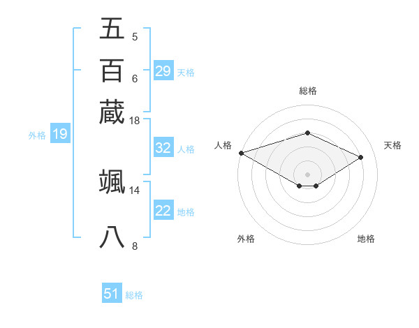 五百蔵 颯八さんの総格は51画の3点!