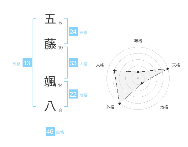 五藤 颯八さんを姓名の画数から五運を鑑定