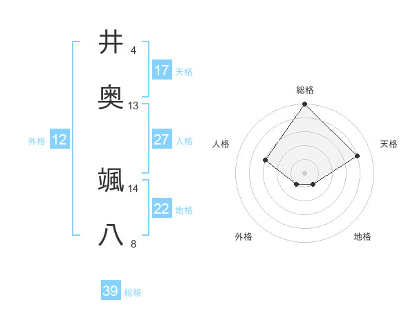 井奥 颯八さんの総格は39画の5点!