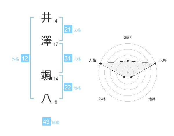 井澤 颯八さんを姓名の画数から五運を鑑定