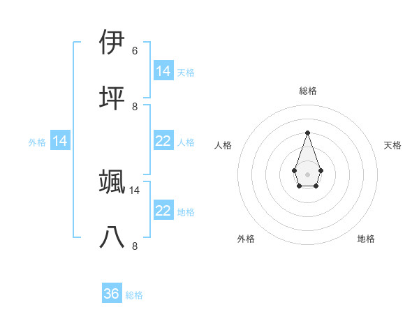 伊坪 颯八さんを姓名の画数から五運を鑑定