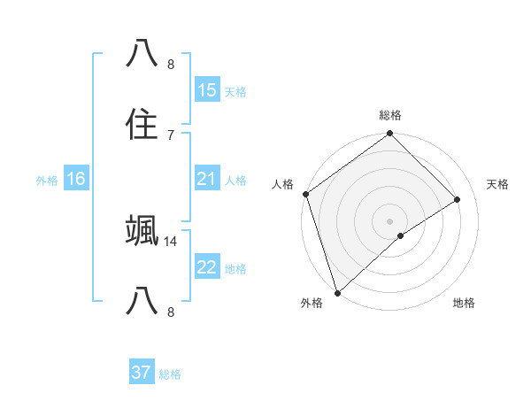 八住 颯八さんの総格は37画の5点!