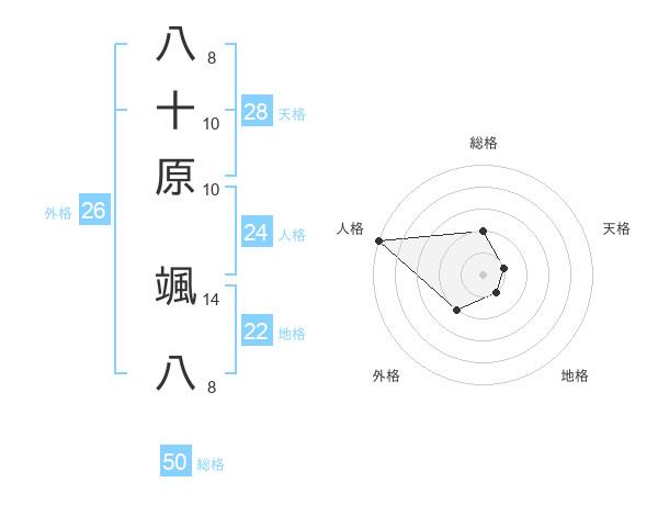 八十原 颯八さんを姓名の画数から五運を鑑定