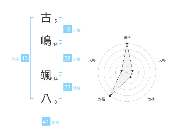 古嶋 颯八さんの外格は13画の5点!