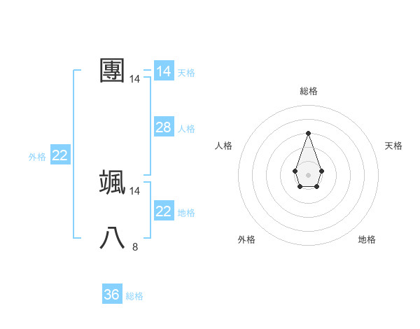 團 颯八さんの外格は22画の1点!