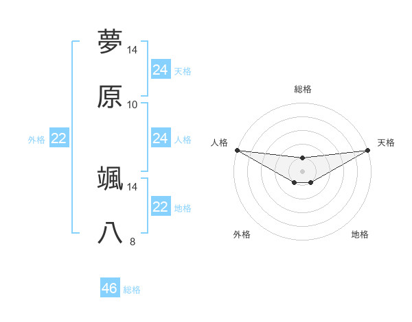 夢原 颯八さんの外格は22画の1点!