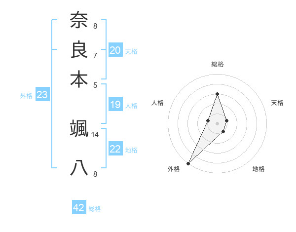 奈良本 颯八さんを姓名の画数から五運を鑑定