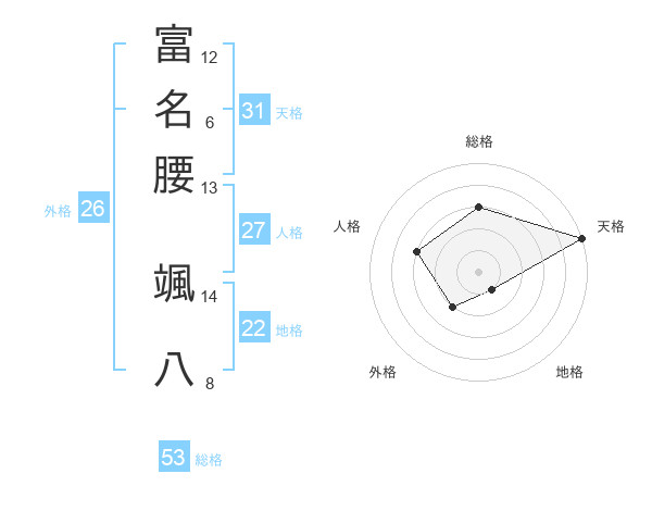 富名腰 颯八さんの天格は31画の5点!