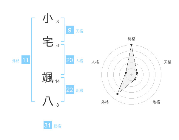 小宅 颯八さんの総格は31画の5点!