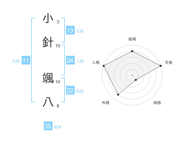 小針 颯八さんの総格は35画の4点!
