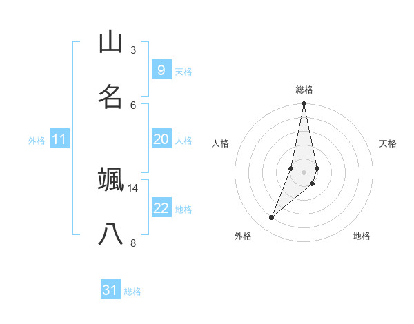 山名 颯八さんの総格は31画の5点!