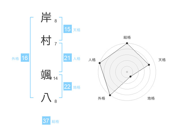 岸村 颯八さんの人格は21画の5点!