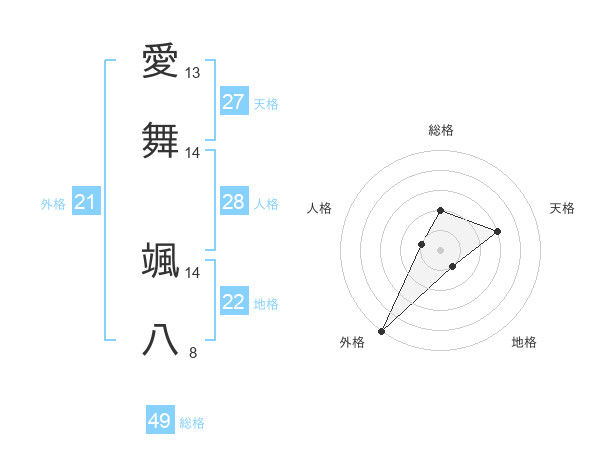 愛舞 颯八さんを姓名の画数から五運を鑑定
