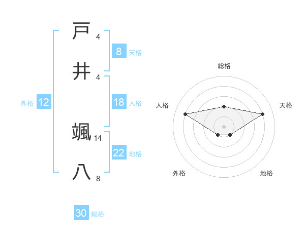 戸井 颯八さんの総格は30画の2点!