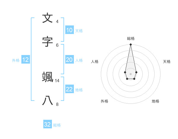 文字 颯八さんの総格は32画の5点!