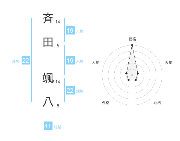 斉田 颯八さんを姓名の画数から五運を鑑定