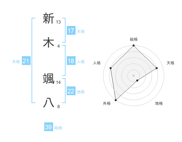 新木 颯八さんの外格は21画の5点!