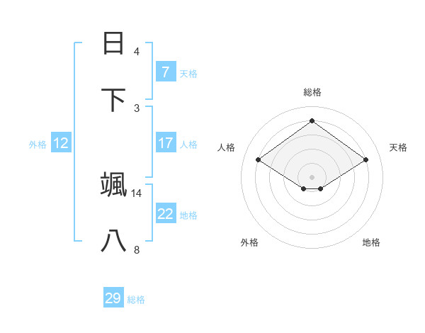 日下 颯八さんの総格は29画の4点!