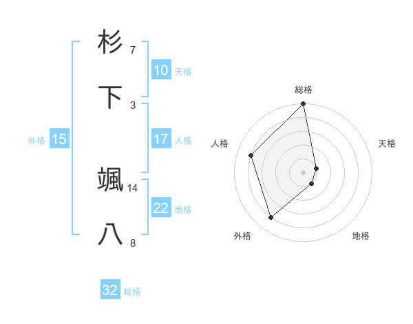 杉下 颯八さんを姓名の画数から五運を鑑定