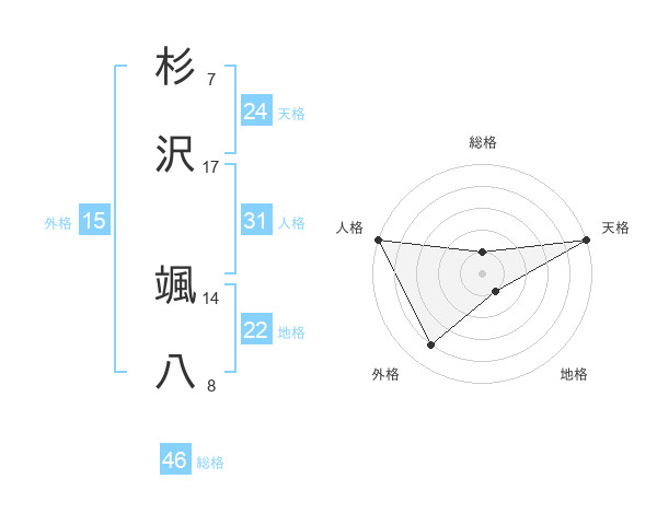 杉沢 颯八さんを姓名の画数から五運を鑑定