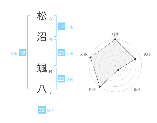 松沼 颯八さんの天格は17画の4点!