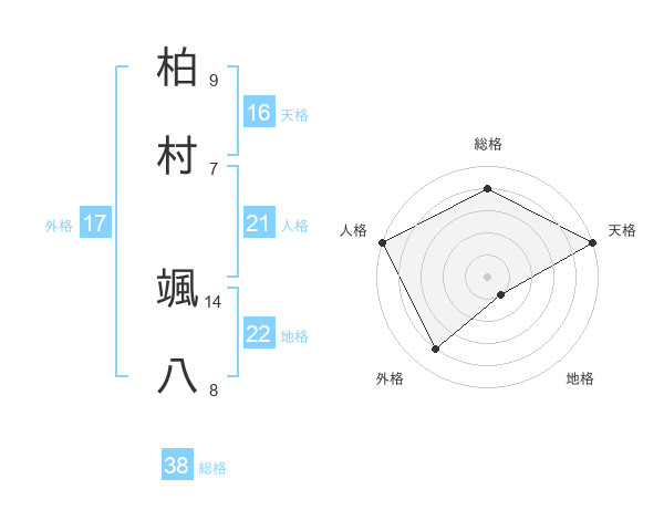 柏村 颯八さんの総格は38画の4点!