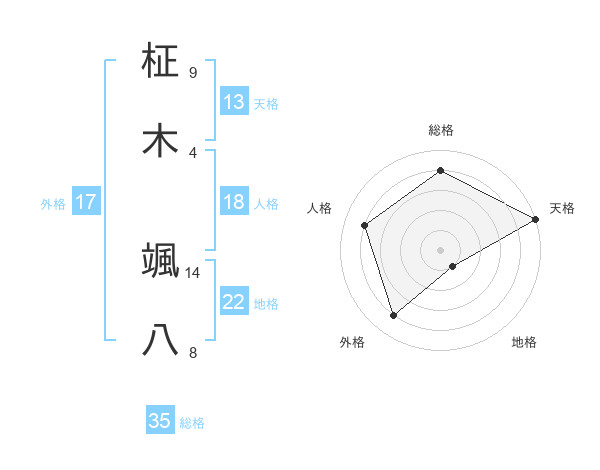 柾木 颯八さんの天格は13画の5点!