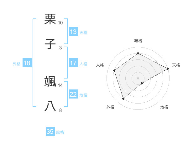 栗子 颯八さんの天格は13画の5点!