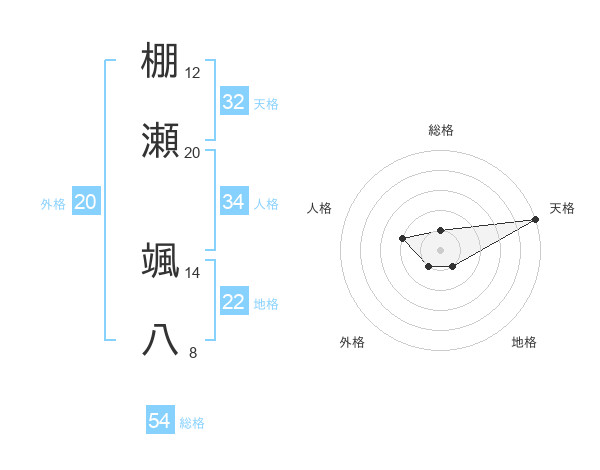 棚瀬 颯八さんの総格は54画の1点!