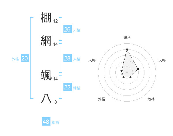 棚網 颯八さんの総格は48画の4点!