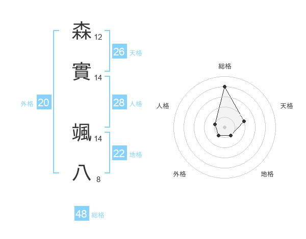 森實 颯八さんの総格は48画の4点!