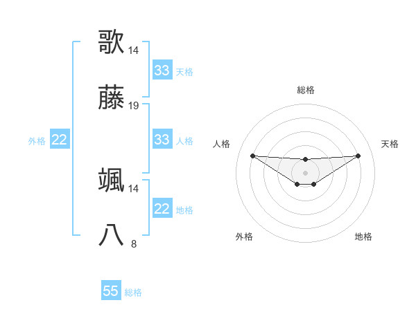 歌藤 颯八さんを姓名の画数から五運を鑑定
