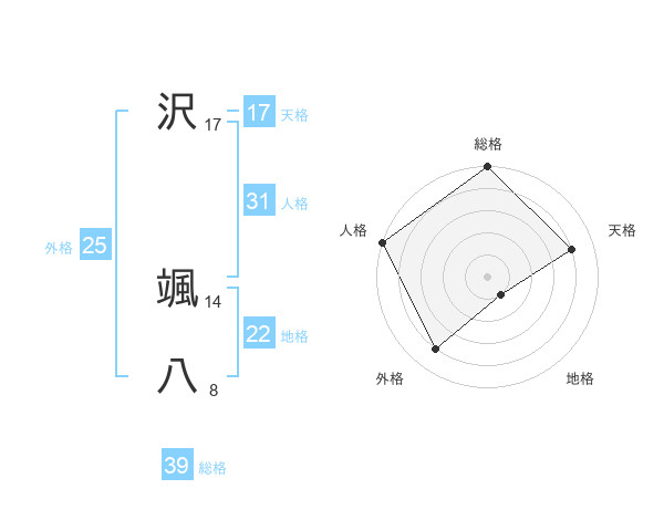 沢 颯八さんの総格は39画の5点
