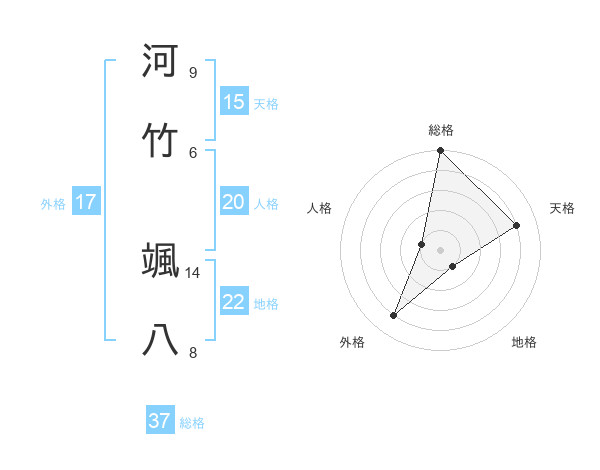 河竹 颯八さんを姓名の画数から五運を鑑定
