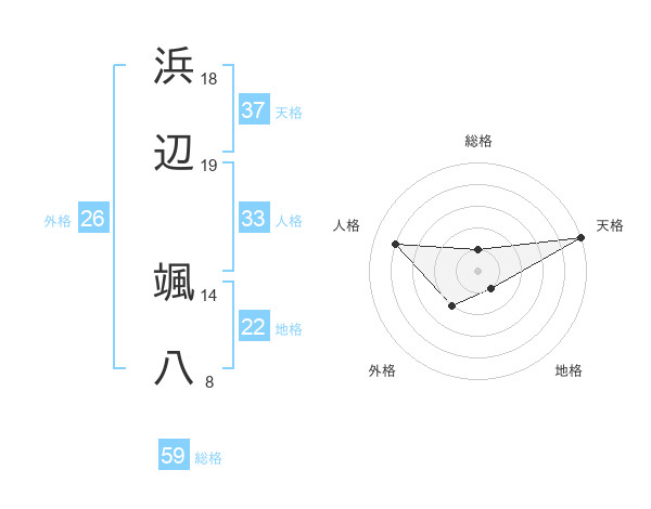 浜辺 颯八さんを姓名の画数から五運を鑑定