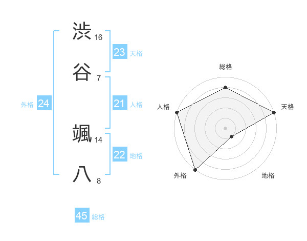 渋谷 颯八さんの総格は45画の4点!