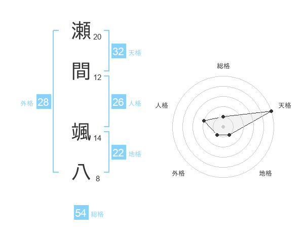 瀬間 颯八さんの総格は54画の1点