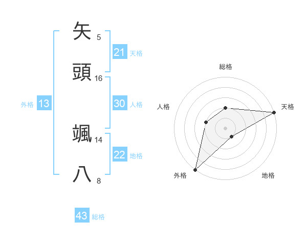 矢頭 颯八さんを姓名の画数から五運を鑑定