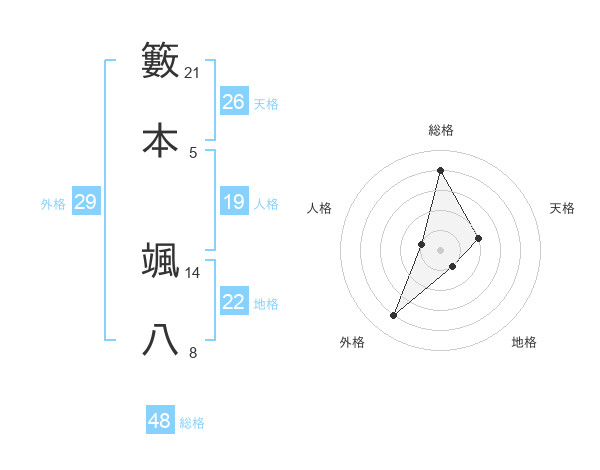 籔本 颯八さんの総格は48画の4点!