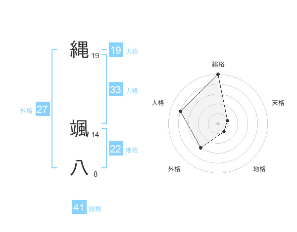 縄 颯八さんの総格は41画の5点!