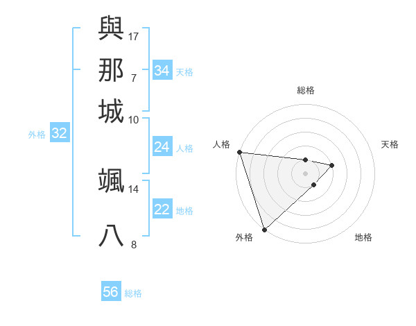 與那城 颯八さんの外格は32画の5点!