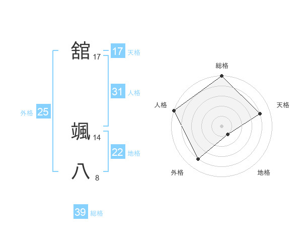 舘 颯八さんを姓名の画数から五運を鑑定