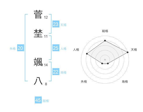菅埜 颯八さんの天格は23画の5点!